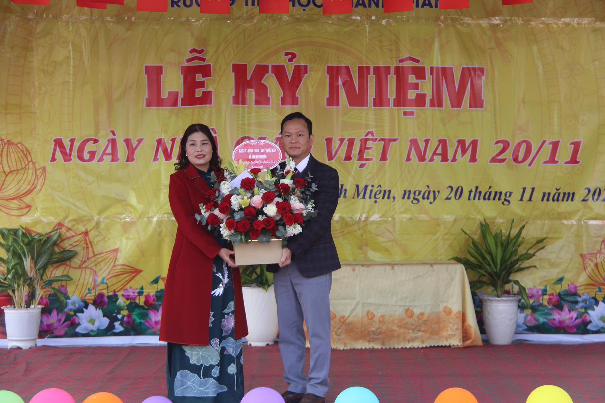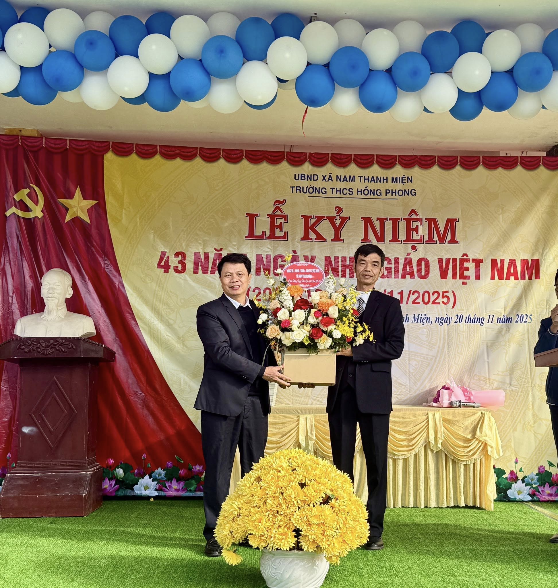 Trong không khí hân hoan, phấn khởi cùng cả nước kỷ niệm 43 năm ngày Nhà giáo Việt Nam (20/11-1982-20/11/2025) sáng ngày 20/11/2025, các đồng chí Lãnh đạo Đảng ủy, Hội đồng nhân dân, Uỷ ban nhân dân, Uỷ ban MTTQ Việt Nam xã đã tổ chức 6 đoàn đến tặng hoa, chúc mừng các thầy giáo, cô giáo tại 1 số điểm trường. Trong đó: