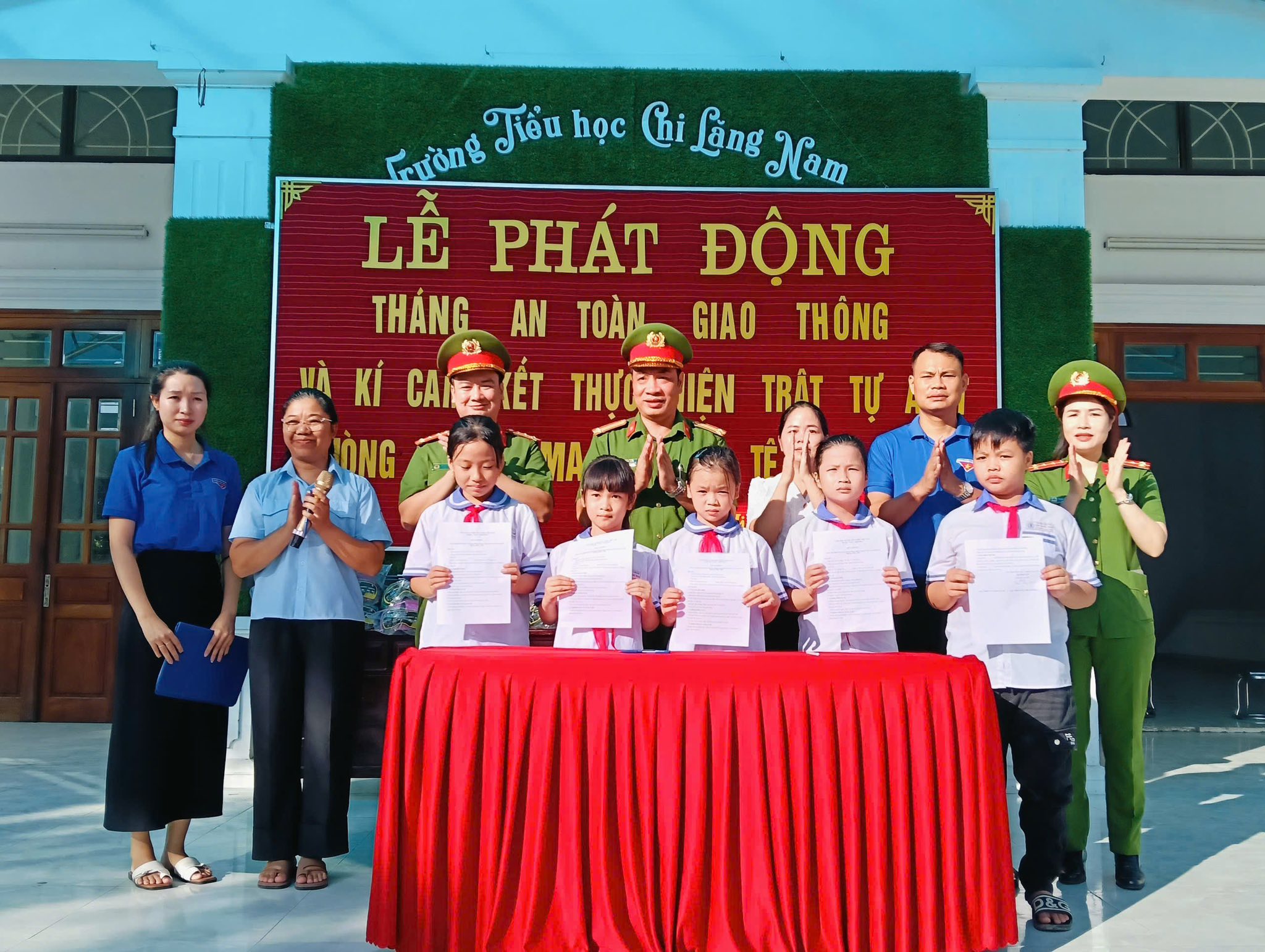PHÁT ĐỘNG THÁNG ATGT VÀ KÝ CAM KẾT THỰC HIỆN TRẬT TỰ ATGT VÀ PHÒNG TRÁNH MA TÚY, CÁC TỆ NẠN XÃ HỘI TẠI TRƯỜNG TIỂU HỌC CHI LĂNG NAM.