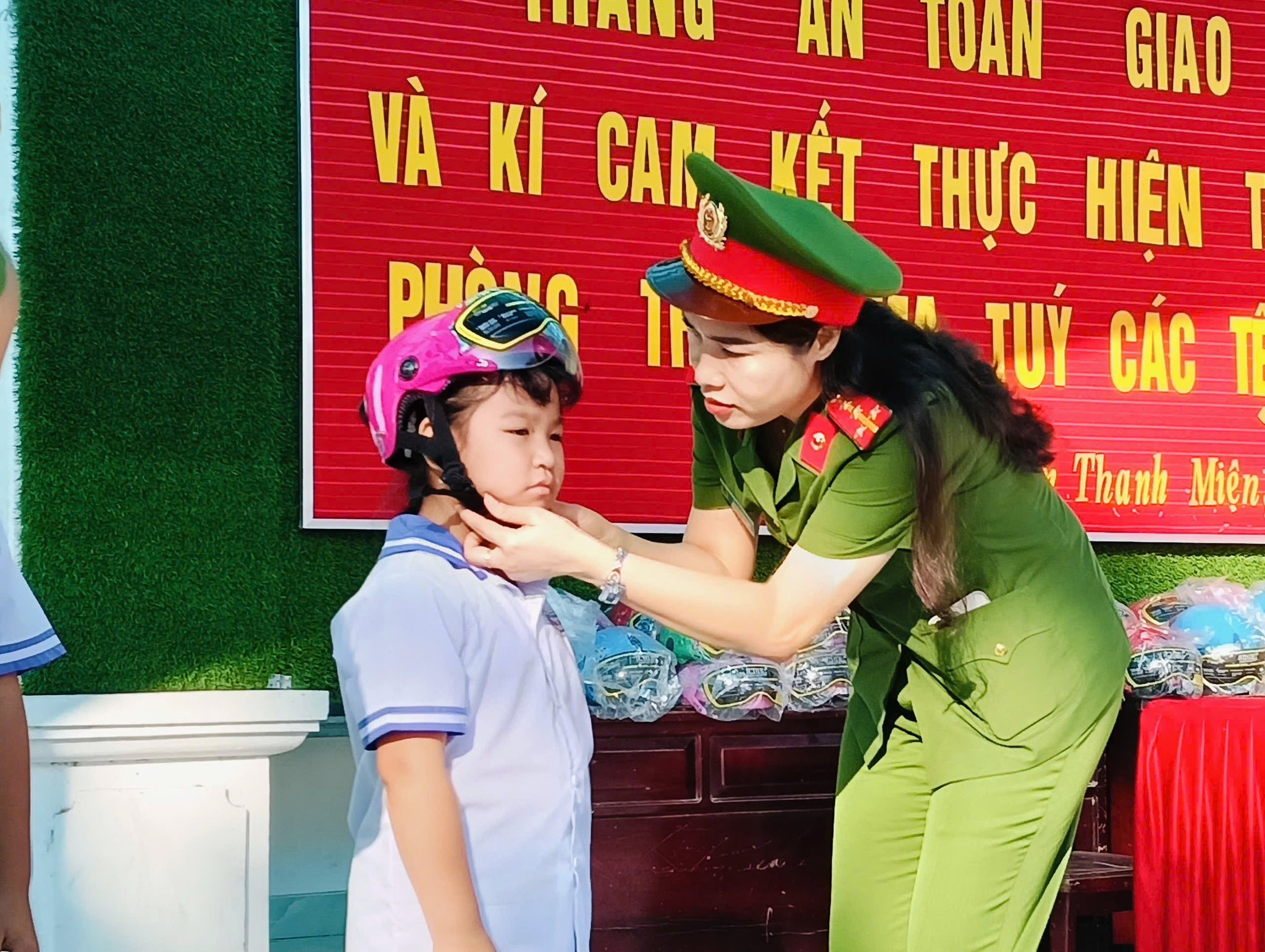 Sau phần tuyên truyền, đại diện học sinh các khối đã ký cam kết thực hiện nghiêm túc trật tự An toàn giao thông, phòng chống ma túy và các tệ nạn xã hội. Nhân dịp này, Công an xã Nam Thanh Miện đã trao tặng mũ bảo hiểm cho một số học sinh của nhà trường với thông điệp “Đội mũ bảo hiểm – Văn hóa giao thông”.