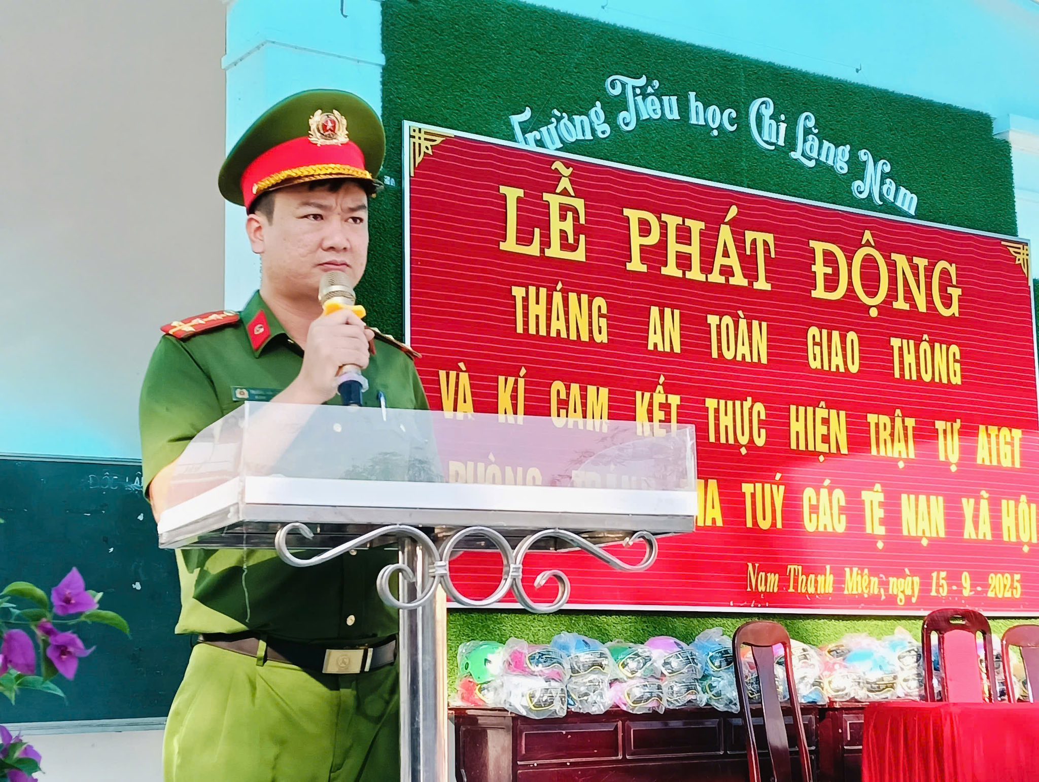 Sáng ngày 15/9/2025, tại Trường Tiểu học Chi Lăng Nam, Công an xã Nam Thanh Miện phối hợp cùng nhà trường tổ chức Lễ phát động Tháng An toàn giao thông và ký cam kết thực hiện trật tự An toàn giao thông, phòng tránh ma túy và các tệ nạn xã hội năm 2025.