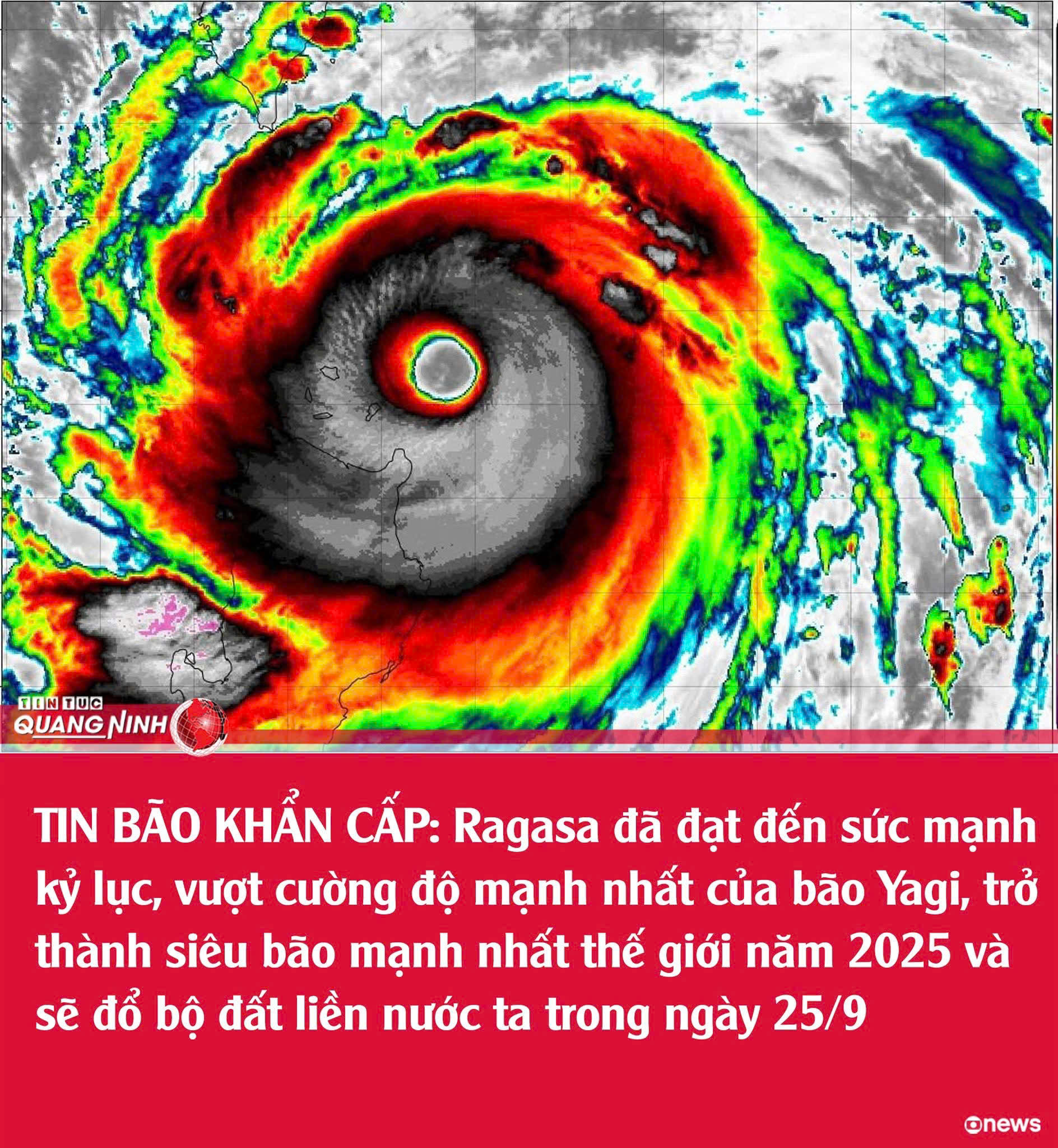Theo bản tin của Trung tâm Dự báo khí tượng Thuỷ văn Quốc gia và Đài Khí tượng thuỷ văn thành phố Hải Phòng: Hồi 7 giờ ngày 22/9, siêu bão RAGASA đang ở cách đảo Lu-Dông (Philippines) khoảng 200 km về phía Đông Bắc, với cường độ cấp 16–17, giật trên cấp 17, nằm trong nhóm siêu bão mạnh nhất từng xuất hiện trên Biển Đông. Dự báo tối ngày (22/9) bão sẽ đi vào Biển Đông, trở thành cơn bão số 9 trong năm, di chuyển nhanh khoảng 20 km/giờ và duy trì cường độ cực đại cấp 16–17, giật trên cấp 17, trong ngày 22–23/9, tương đương hoặc vượt cường độ mạnh nhất của bão số 3 (Yagi) năm 2024.